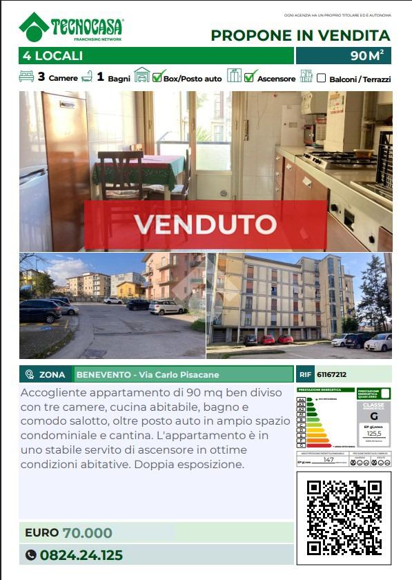 In Via Carlo Pisacane, nei pressi del nuovo supermercato 365, proponiamo in vendita appartamento ben tenuto, di 90 mq con ingresso, comodo salotto, cucina abitabile, 3 camere da letto e un bagno. L'appartamento è diviso in modo tale da avere spazio e accoglienza in casa, è molto luminoso avendo una doppia esposizione ed è in buono stato abitativo. Arricchisce la proprietà un posto auto condominiale in un ampio spazio e una comoda cantina. Zona ottimale per la vicinanza con gli svincoli autostradali evitando il traffico della città. Stabile dotato di ascensore.